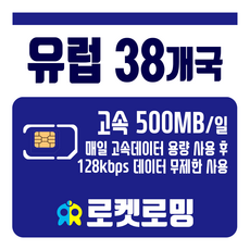 로켓로밍 (로켓유심) 유럽 38개국 매일 500MB 무제한데이터 공항수령가능, 8일