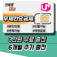 선불폰이지 LGU 무제한요금제 3만원무료충전 6개월추가충전 유심기변 알뜰유심 USIM 모빙, 정액선불 매일5G+ [66,000원], 유심비 [+10,000원]