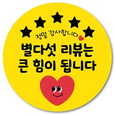 [1000매] 배달 스티커 배민 리뷰 쇼핑몰 후기 별다섯 감사 땡큐 원형스티커, 노랑