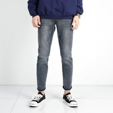 [데님공방] 남자 스판 테이퍼드핏 데님팬츠 그레이 9부10부 히든밴딩 빈티지 청바지