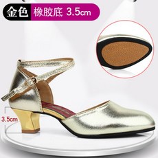 자이브 살사 줌바 다이어트 라틴 댄스 신발 사계절 중간굽 사교 가죽, 35, ZK58 골드 3.5 힐