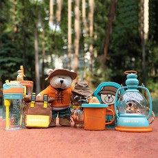 스벅 스타 벅스 컵 2021 새로운 여름 캠핑 곰 모양의 밀짚 컵 에나멜 동반 컵 이중 유리, 591m 캠핑 곰 모양의 이중 유리