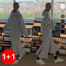 [1+1특가 기모 후드원피스] 온더리버 라이크 베이직 기모 후드 롱 원피스