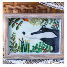 펠트완제품 양모펠트 음악 자수 재료 숲 오소리 수공 DIY인테리어그림 봉제 세트 포함액자, T01-북유럽스타일의 사진프레임 타입재료 꾸러미