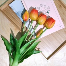 케어가든 망고튤립 조화 부케 부쉬 꽃 장식 5송이, 주황