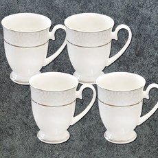 비발디 웨이브 베이직 머그컵 4p세트 본차이나 도자기머그 예쁜컵 고급 머그세트 집들이 이사선물, 비발디웨이브머그실버_4p