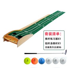 골프 퍼팅 퍼터 기구 자동 리턴 연습기 원목 골프 실내 스윙 홈트 집에서 인조 잔디 매트, 우드 세트