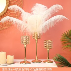 거실 식탁 크리스탈 캔들 홀더 깃털 장식 레트로 로맨틱, 3개촛대+6깃털(백색)