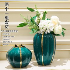 수입꽃병 편집샵 플랜인테리어 고급 화분 라이트 럭셔리 꽃병 장식 거실 꽃꽂이 말린 꽃, 그린 씨 머드 드레스-화이트 수국 꽃다발 2종 세