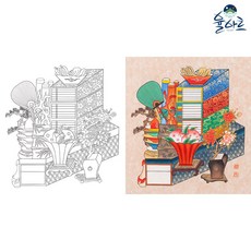 명품 책거리도 4 민화 도안 민화그리기 본그림 공모전 취미 원데이클래스 수업자료 컬러링 본, 고급 닥순지, 원본 사이즈(추천)