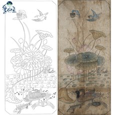 어해화조도 민화 도안 본그림 민화그리기 공모전 취미 원데이클래스 수업자료 컬러링 민화본, 고급 닥순지, 원본 사이즈(추천)