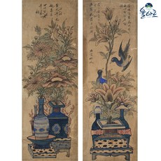 기명화조도 2폭 병풍 1 민화 도안 본그림 민화그리기 공모전 취미 원데이클래스 컬러링 본, 기명화조도 2폭 병풍(1), 고급 닥순지, 원본(추천)