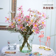 라탄공예 데이지 조화 세트 꽃꽂이 채화 장식꽃 참신한 트렌드심플 가구 거실침실 소품, T14-10가지 네덜란드 국화 가루 믹스(미포함 꽃병)