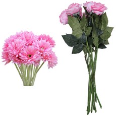 10 PCS 인공 실크 Gerbera 데이지 꽃 핑크 & 10 PC를 라텍스 리얼를 눌러 장미 장식 로즈 인공 꽃, 하나, 핑크 & 핑크 화이트