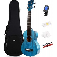 소프라노 우쿨렐레 엔야 21″ 블루 솔리드 마호가니 탑 우쿨렐레 초보자 키트(온라인 레슨 케이스 튜너 스트랩 스트링 픽(, 단일옵션