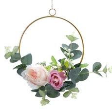 웨딩 보육 벽 장식 원형의 꽃 후프 화환 화환 인공 장미 꽃 금속 링 후프 화환, 하나, 보여진 바와 같이