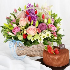 99플라워 (당일수령) 사랑 한가득+케익 [ST-A1919] – 전국꽃배달서비스 기념일 봄 생일 케익 생화 꽃선물 당일배송 꽃바구니