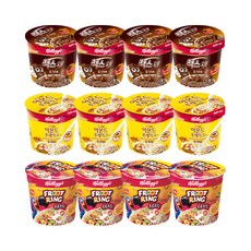 켈로그 컵시리얼 3종세트 (첵스초코30gx4+아몬드푸레이크30gx4+후르트링30gx4), 12개, 상세페이지 참조
