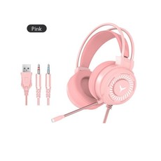 게임용 헤드셋 서라운드 사운드 스테레오 유선 이어폰 마이크 USB 다채로운 빛 PC 노트북 게임 헤드셋 3.5mm 컴퓨터 헤드셋 헤드셋 게이밍 디지털피아노 어학용 인강 온라인수업, 분홍, 협력사
