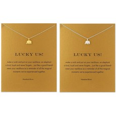 백리버 친선 클로버 목걸이 유니콘 행운의 코끼리 목걸이(메시지 카드 기프트 카드 포함)2&3팩(엘리펀트 2팩)
