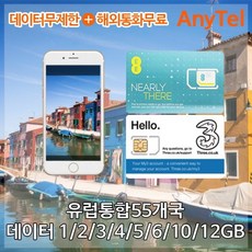 [유럽 55개국] 쓰리심 EE심 동서유럽 유럽유심칩 인천공항 유럽유심 스페인유심 프랑스유심, 1GB_쓰리심 유럽내 통화/문자무제한, 1개