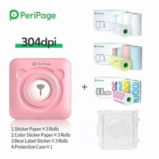 peripage 휴대용 프린터 304dpi a6 mini 무선 스티커 프린터 전화 사진 diy 스티커 메이커 자체 접착 감열지 롤, 핑크 9 종이