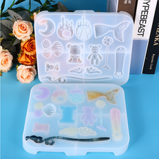 레진아트 종합 몰드 13종 구성 곰돌이 고양이 책갈피 비녀 달 레진공예