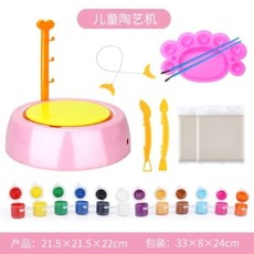 DIY 미니 자동 물레 세트 찰흙 지점토 도자기 그릇 컵 접시 만들기 자기계발 집콕 놀이, 핑크 도예기