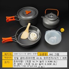 아웃도어 캠핑 티포트 후라이팬 식기 세트 2~3인, 오렌지