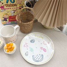 플레이트 케이크 플레이팅 과일 낙서 블루 크레파스 낙서 홈카페 샐러드 귀여운 그릇 디저트 접시 디자인 그림 도자기, C