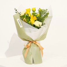 프레시가든 생화 퓨어옐로 미니장미 + 후리지아 + 카네이션 19송이 꽃다발, 혼합색상