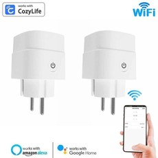 스톱워치 16A 스마트 와이파이 플러그 EU 전원 모니터 홈 무선 소켓 타이머 앨리스 알렉사와 함께 작동 Google, 2PCS EU