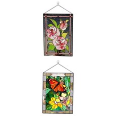 홈 오피스에 대 한 2Pcs 스테인드 사각형 창 패널 벽 매달려 장식, 여러 가지 빛깔의, 아크릴