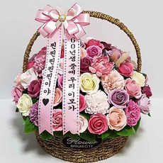 수앤로즈플라워 비누꽃바구니 60송이 육순선물 환갑선물 부모님생신선물, 카네이션 혼합