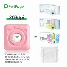 peripage 휴대용 프린터 304dpi a6 mini 무선 스티커 프린터 전화 사진 diy 스티커 메이커 자체 접착 감열지 롤, 핑크 9 종이