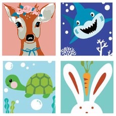 리빙듀오 DIY 유화그리기 20×20 4가지 꽃머리띠사슴+아기상어+바다속거북이+당근토끼, 1개