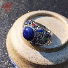 [해외] 치앙마이 태국 수제 에나멜 925 스털링 실버 주얼리 청금석 반지 여성 생일 크리스마스 GI