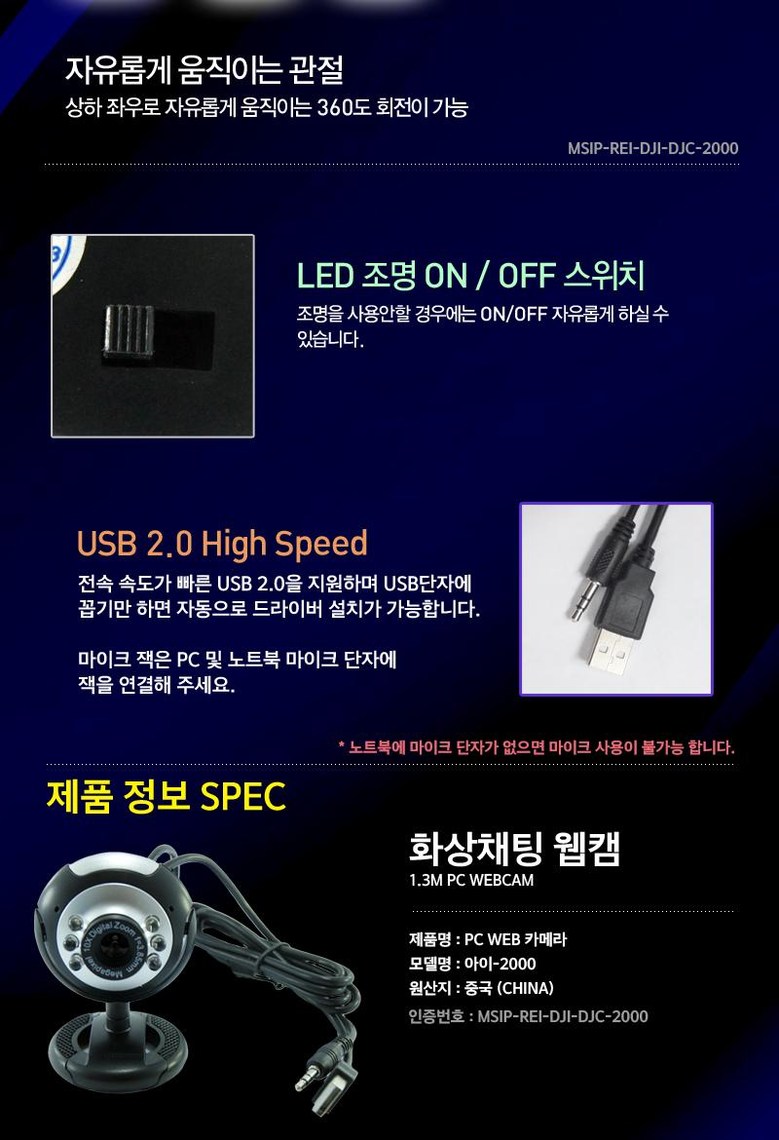 가성비 좋은 화상카메라/PC캠/130만화소/CMOS/내장마이크/USB/30fps, 단일옵션