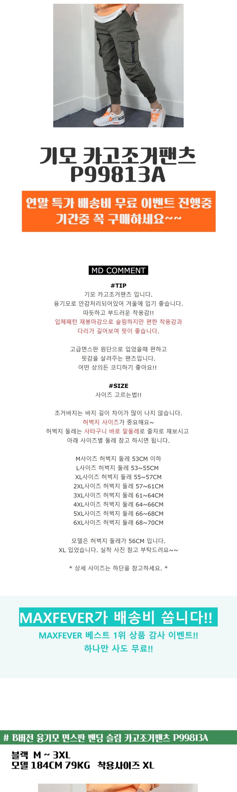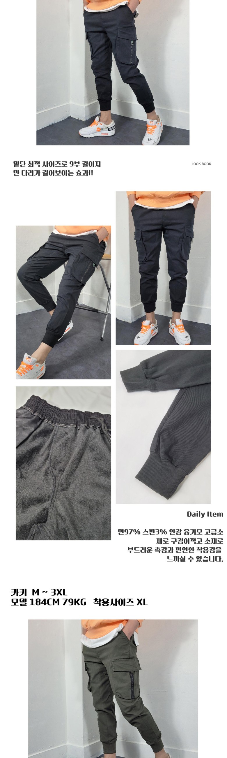 겨울 융기모 면 스판 슬림핏 카고 조거팬츠 ( M-3XL 밴딩 바지 남자여자 )