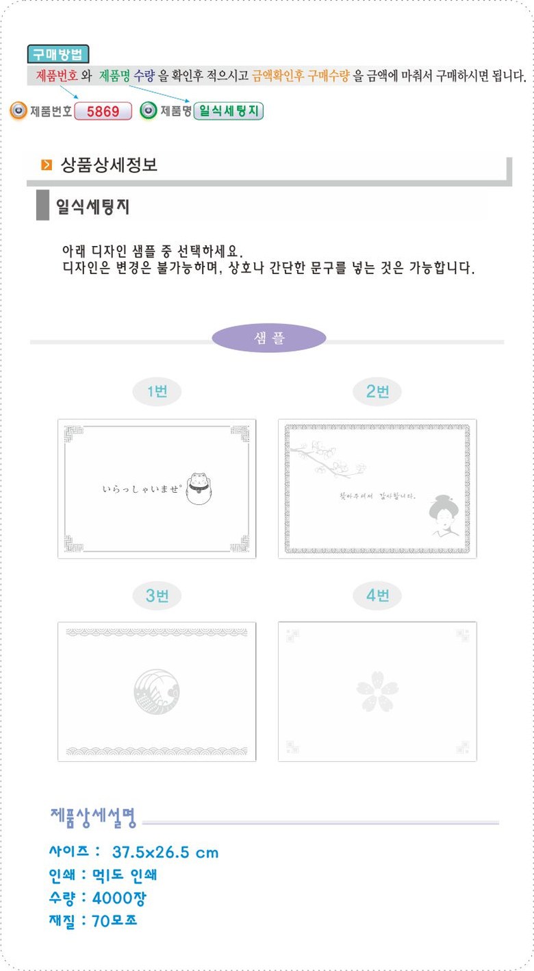 공감인쇄 5869 일식세팅지, 4000장