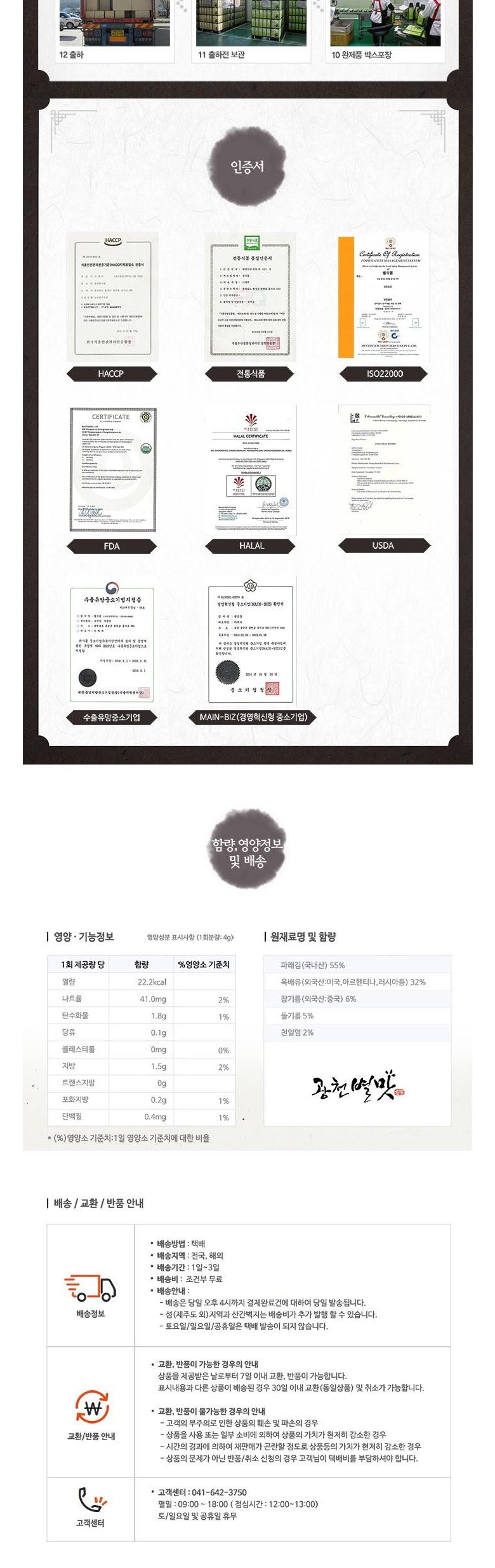 | 생산자 및 소재지 | 주식회사 별식품 / 충남 홍성군 광천읍 충서로 360 |
