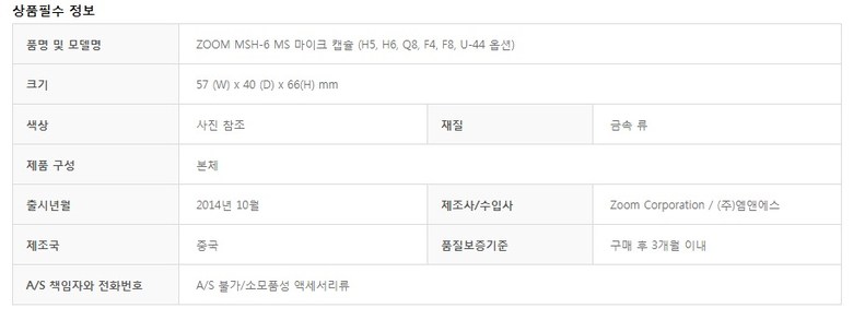 | 제조자(수입자) | Zoom Corporation / (주)엠앤에스 |