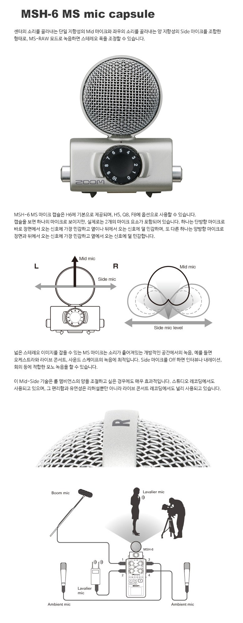 국내정품 ZOOM 줌 F1 전문녹음 영상제작 액션캠 카메라 미러리스DSLR 마이크, MSH-6(MS마이크)