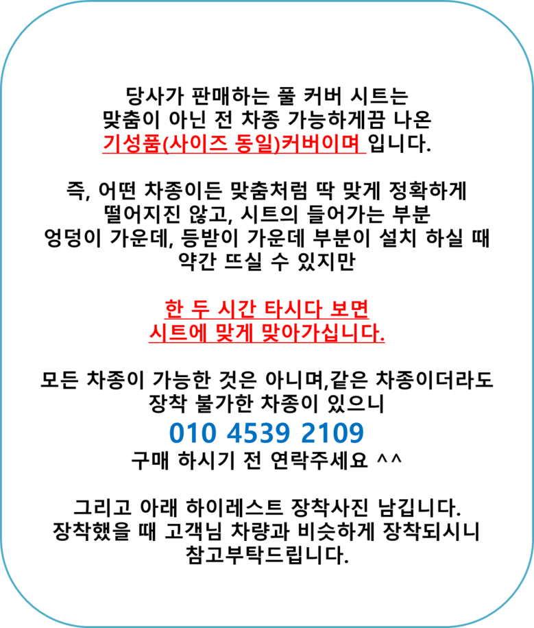 | 품명 및 모델명 | 자동차시트커버 풀세트 |
