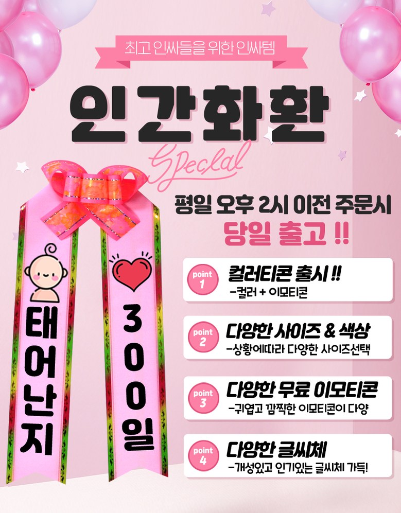 꽃요정 인간화환 결혼식 기념일 글씨리본 화환띠 대형화환 아기화환