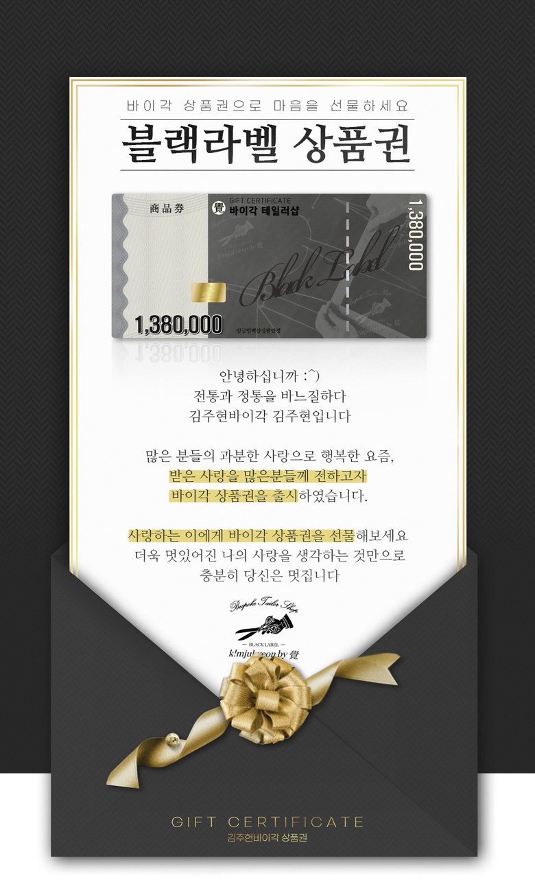 남자 맞춤정장 맞춤예복 블랙라벨 모바일 기프티콘 기프트상품권