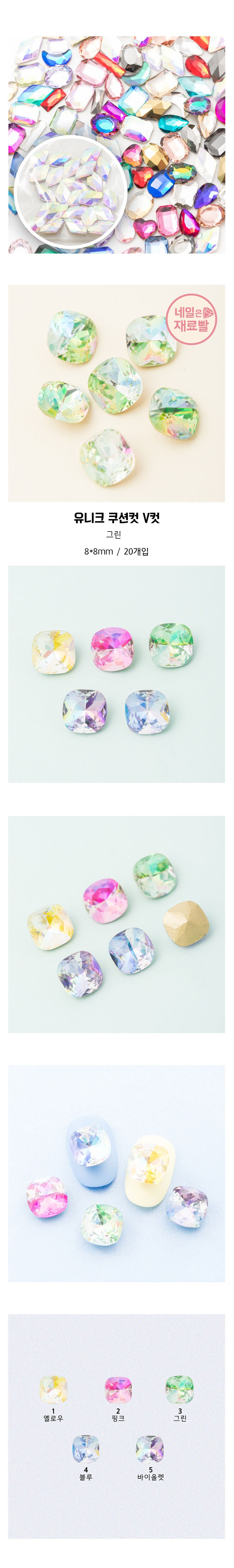 네일은재료빨 대용량 스톤 유니크 쿠션컷 V컷 네일아트재료, 3 그린, 20개