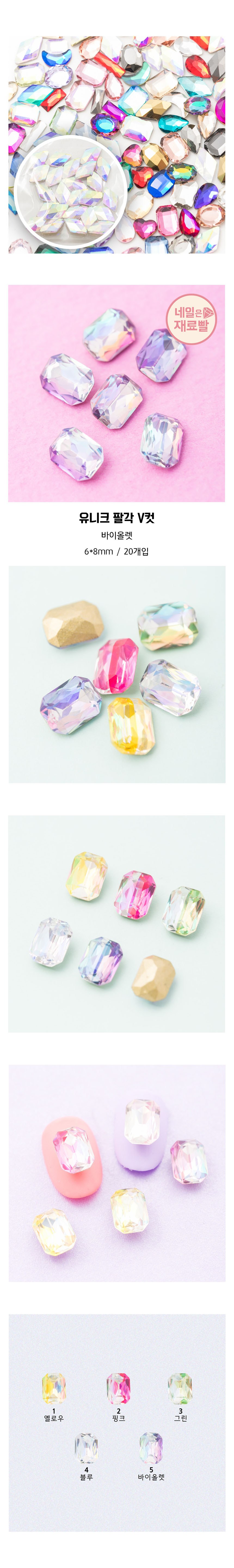 네일은재료빨 대용량 스톤 유니크 팔각 V컷 네일아트재료, 5 바이올렛, 20개