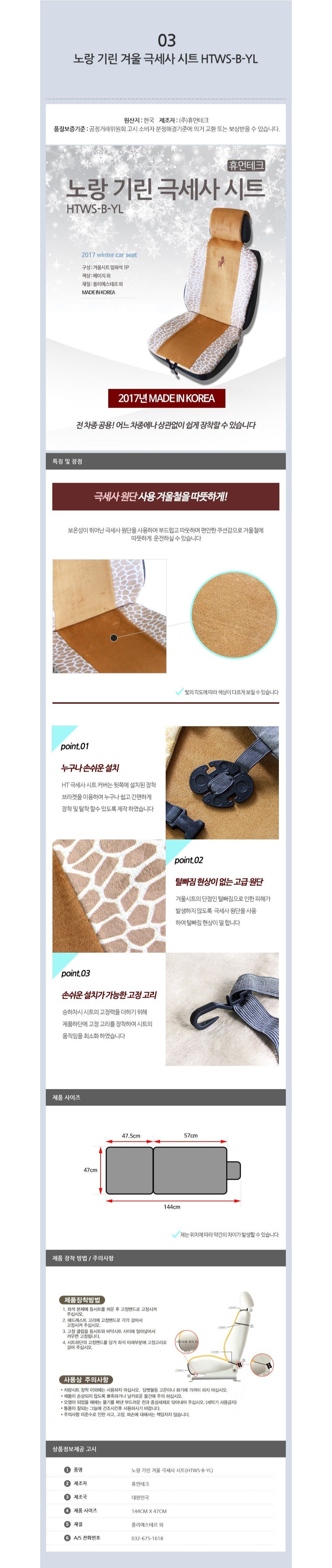 | 품명 및 모델명 | 겨울 극세사 자동차 시트커버 노랑기린 HTWS-B-YL |