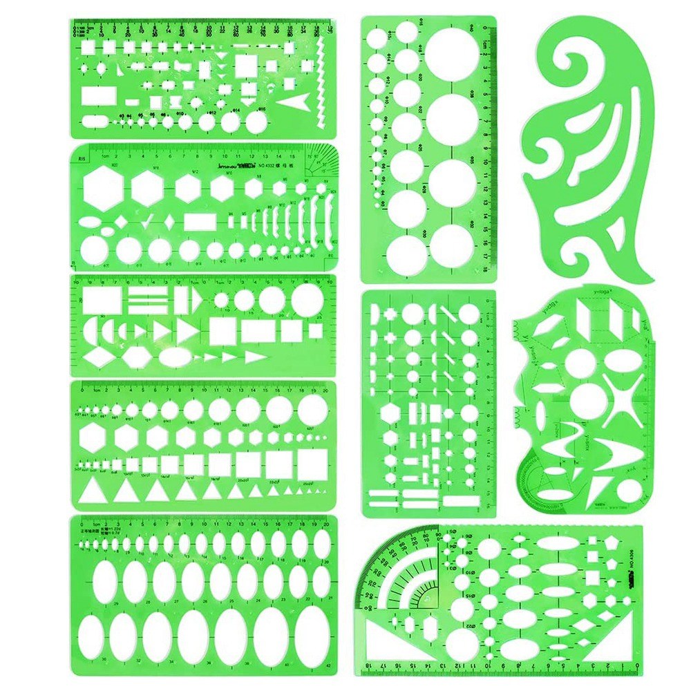 노 브랜드 10 pcs 측정 플라스틱 템플릿 원형 기하학적 드로잉 건물 보석 desi, 녹색